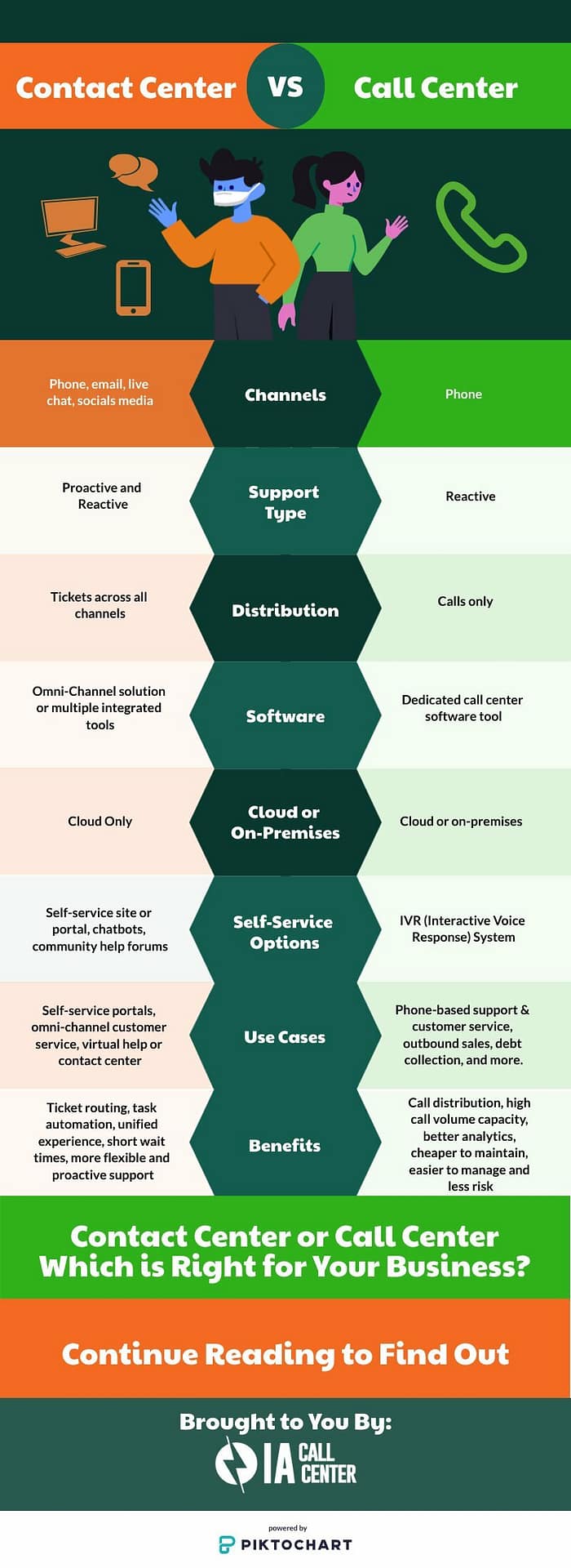 Infographic that displays major differences between call centers and contact centers